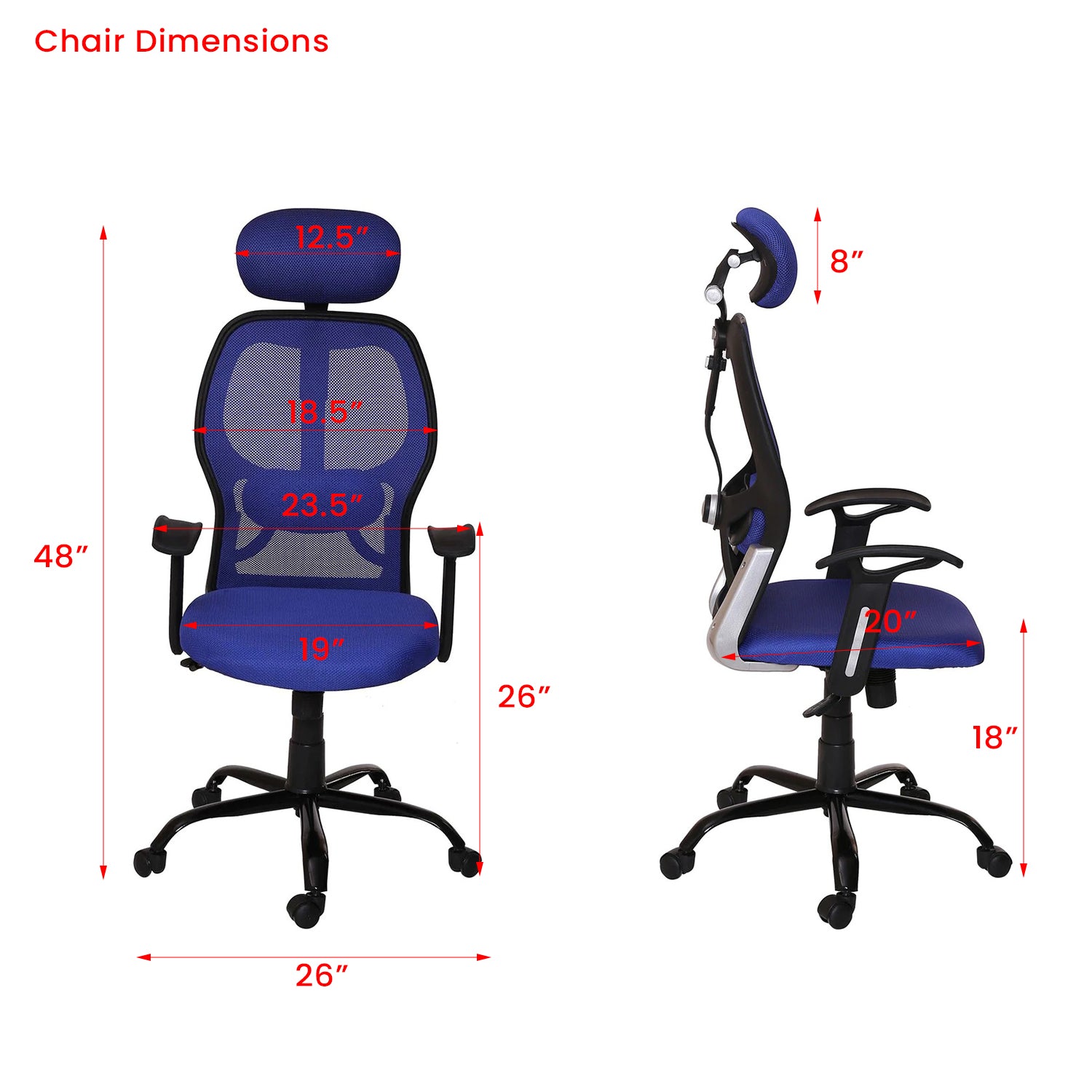 - Dimensions: H 48 X W 22 X D24 - Seating Height:18.5 (All Dimensions In Inches)