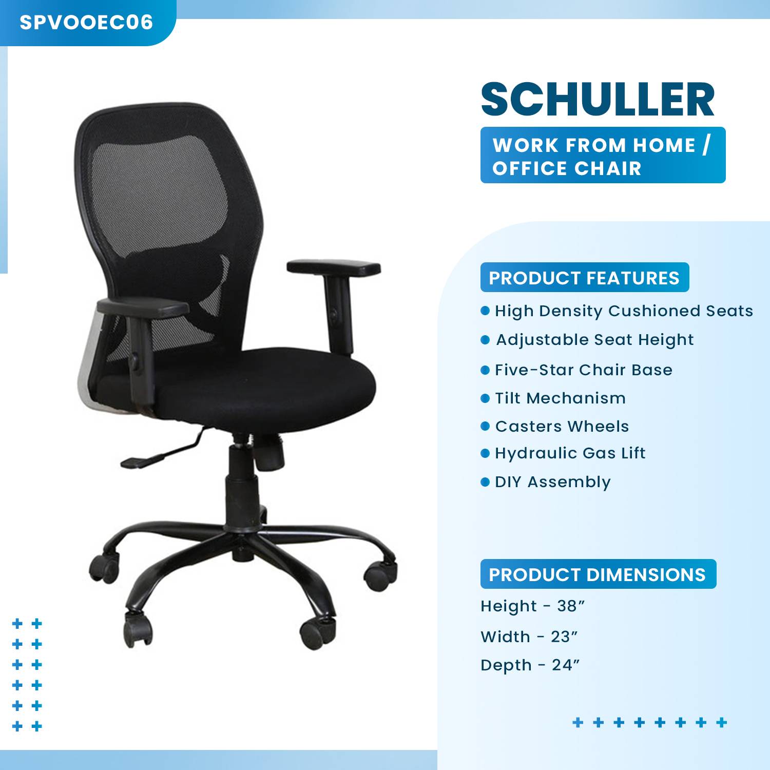 Schuller Medium Back Ergonomic Chair For Work From Home & Office - Black