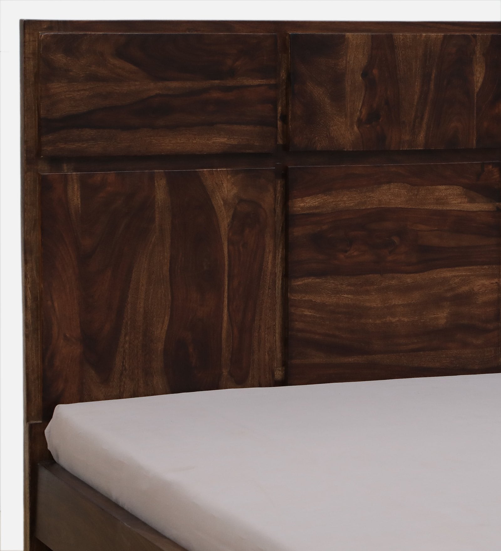 Sheesham Wood Queen Size Bed In Provincial Teak Finish With Drawer Storage