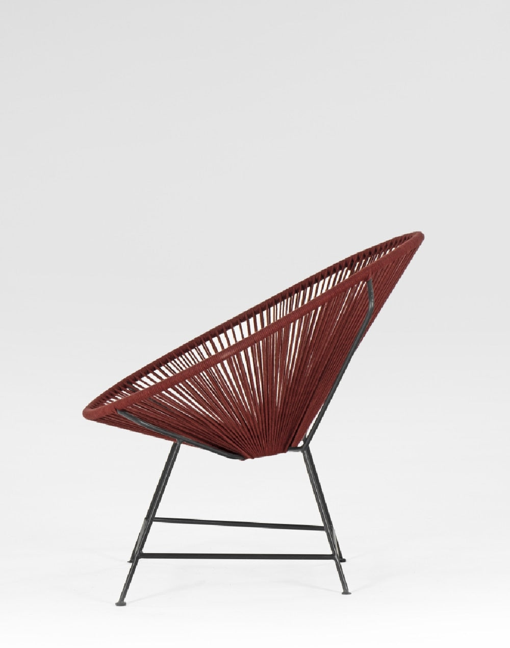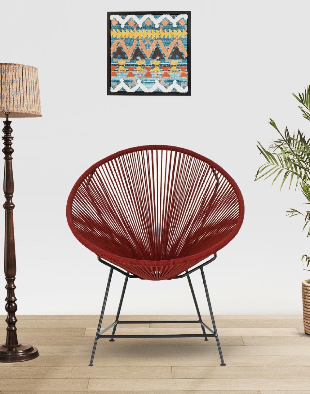 Solid Wood And Cloth Upholstered Chair In Maroon Finish