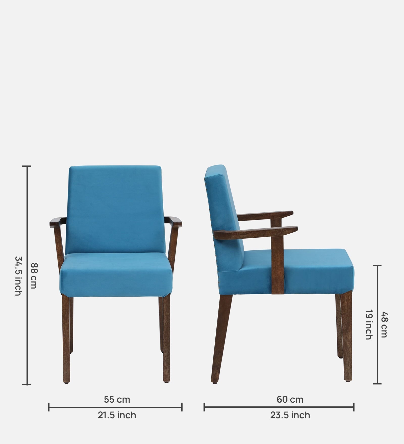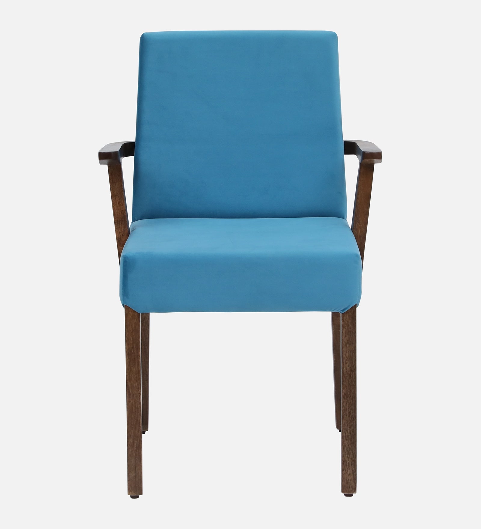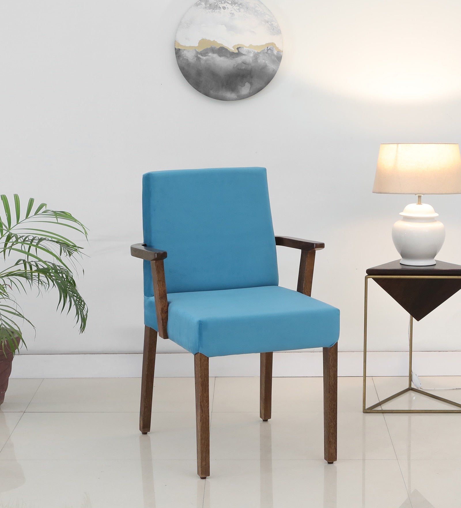 Solid Wood Arm Chair In Teak Polish & Fabric Upholstered Seat