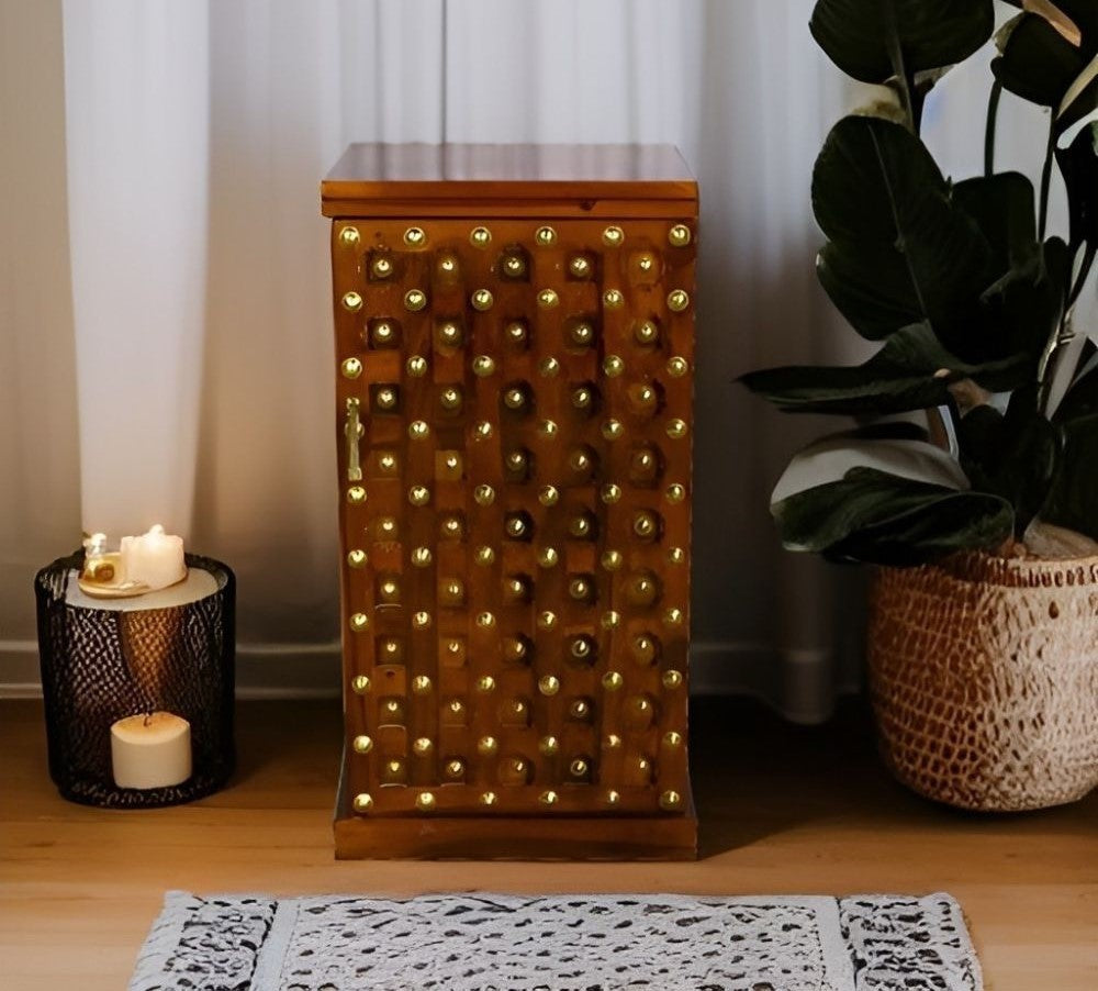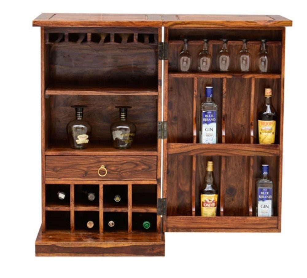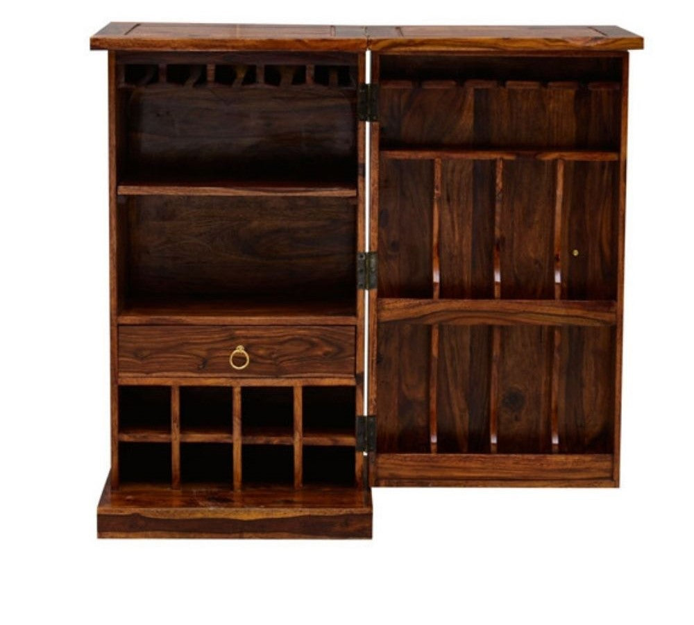 Solid Wood Bar Cabinet In Honey Finish
