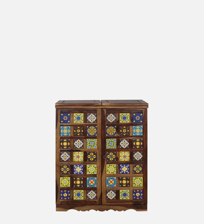 Solid Wood Bar Cabinet In Teak Finish