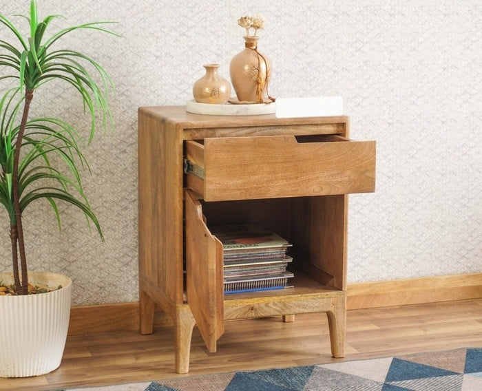 - A solid wood bedside table, or nightstand, is an essential piece of bedroom furniture that combines functionality with style.