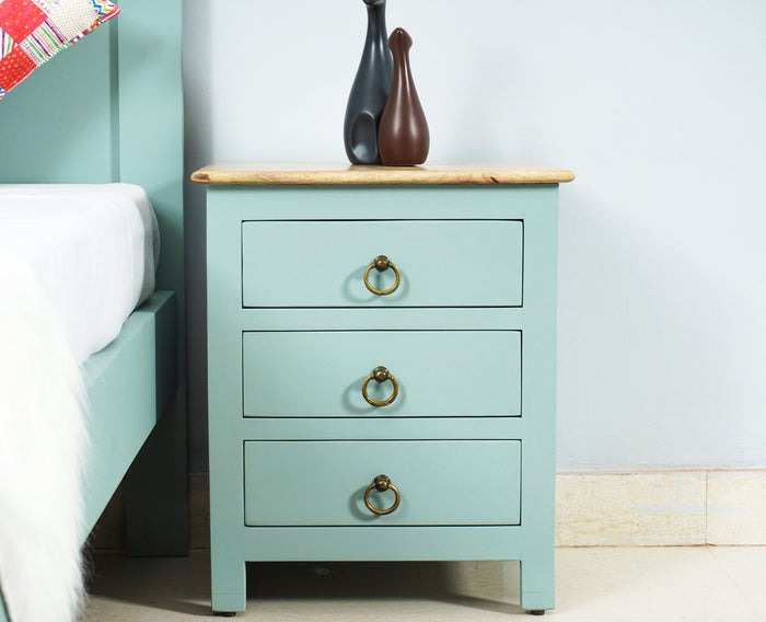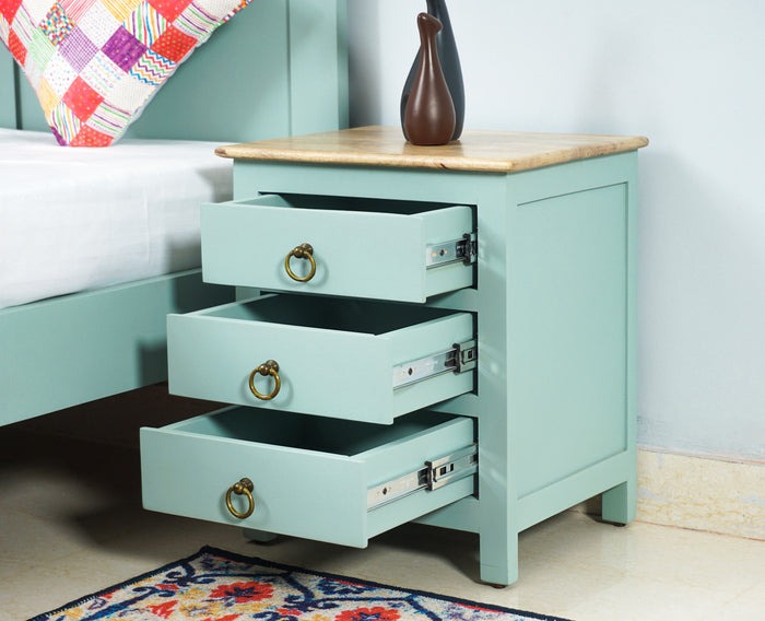 Solid Wood Bedside Tables In Silt Green Finish