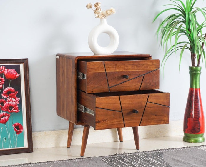 - A solid wood bedside table, or nightstand, is an essential piece of bedroom furniture that combines functionality with style.