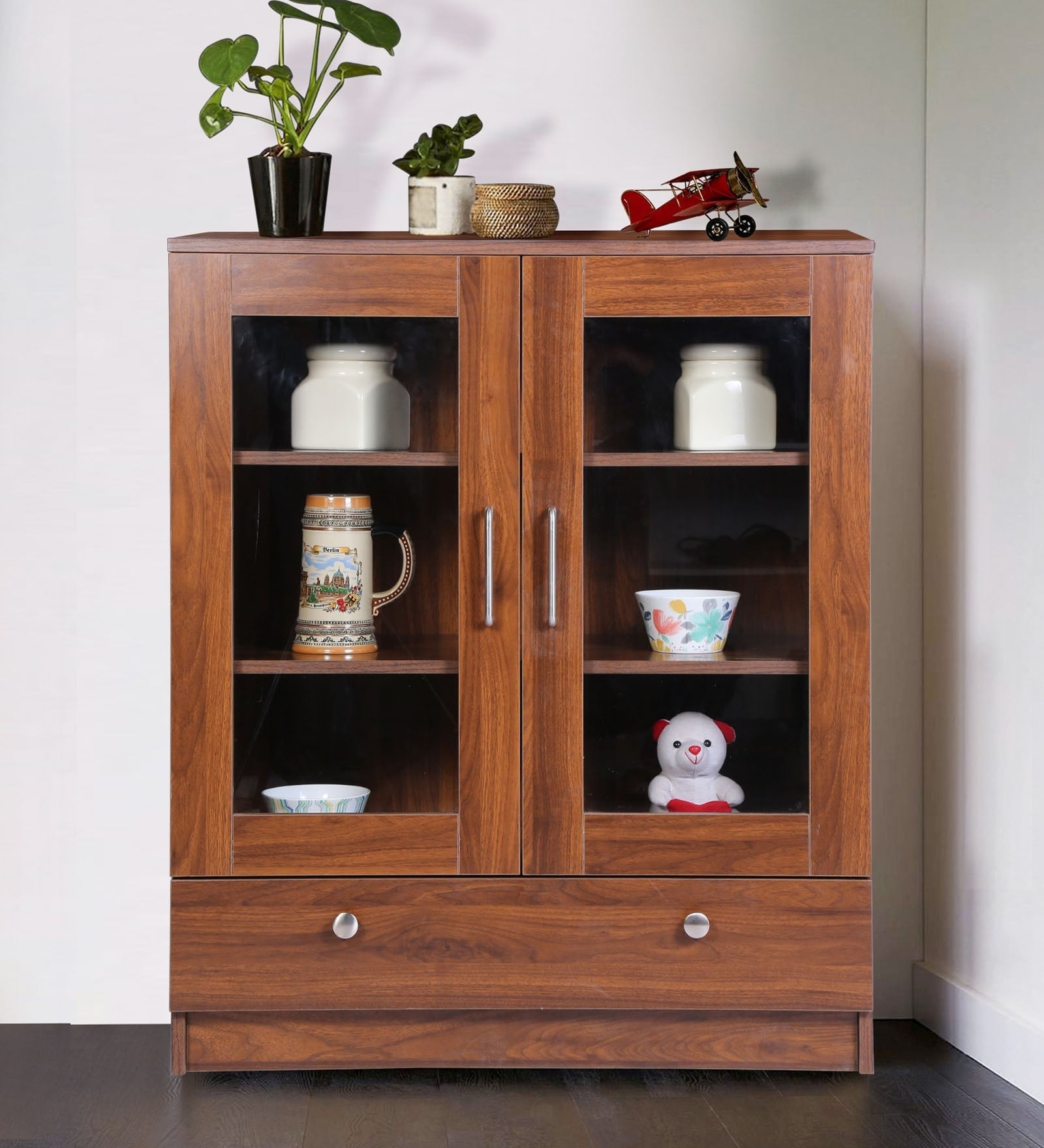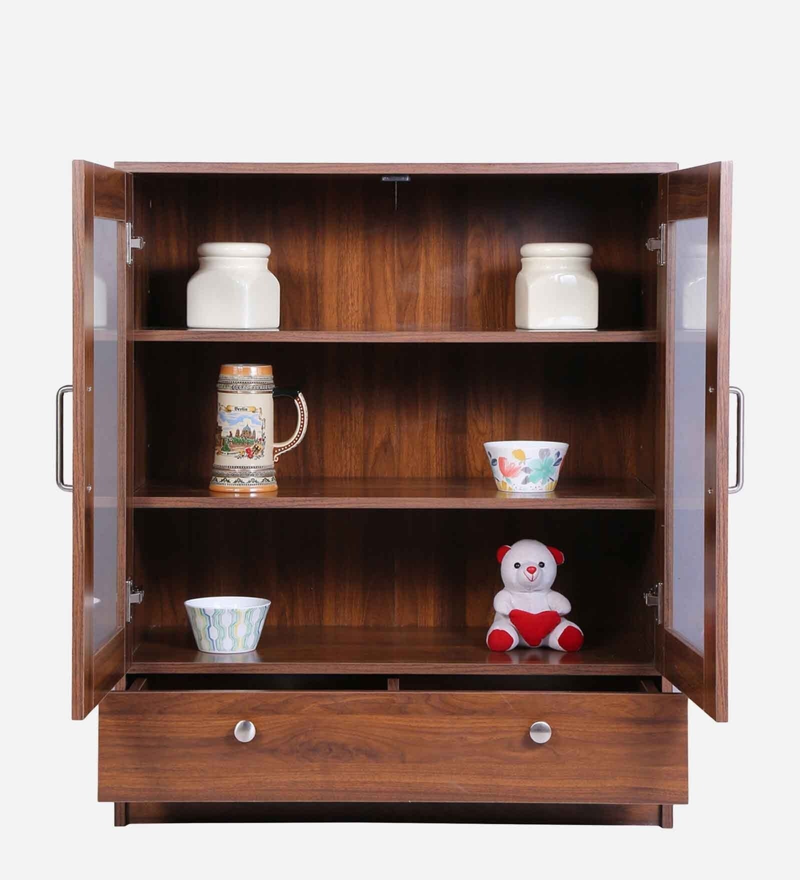 Solid Wood Crockery Unit In Columbian Walnut Finish