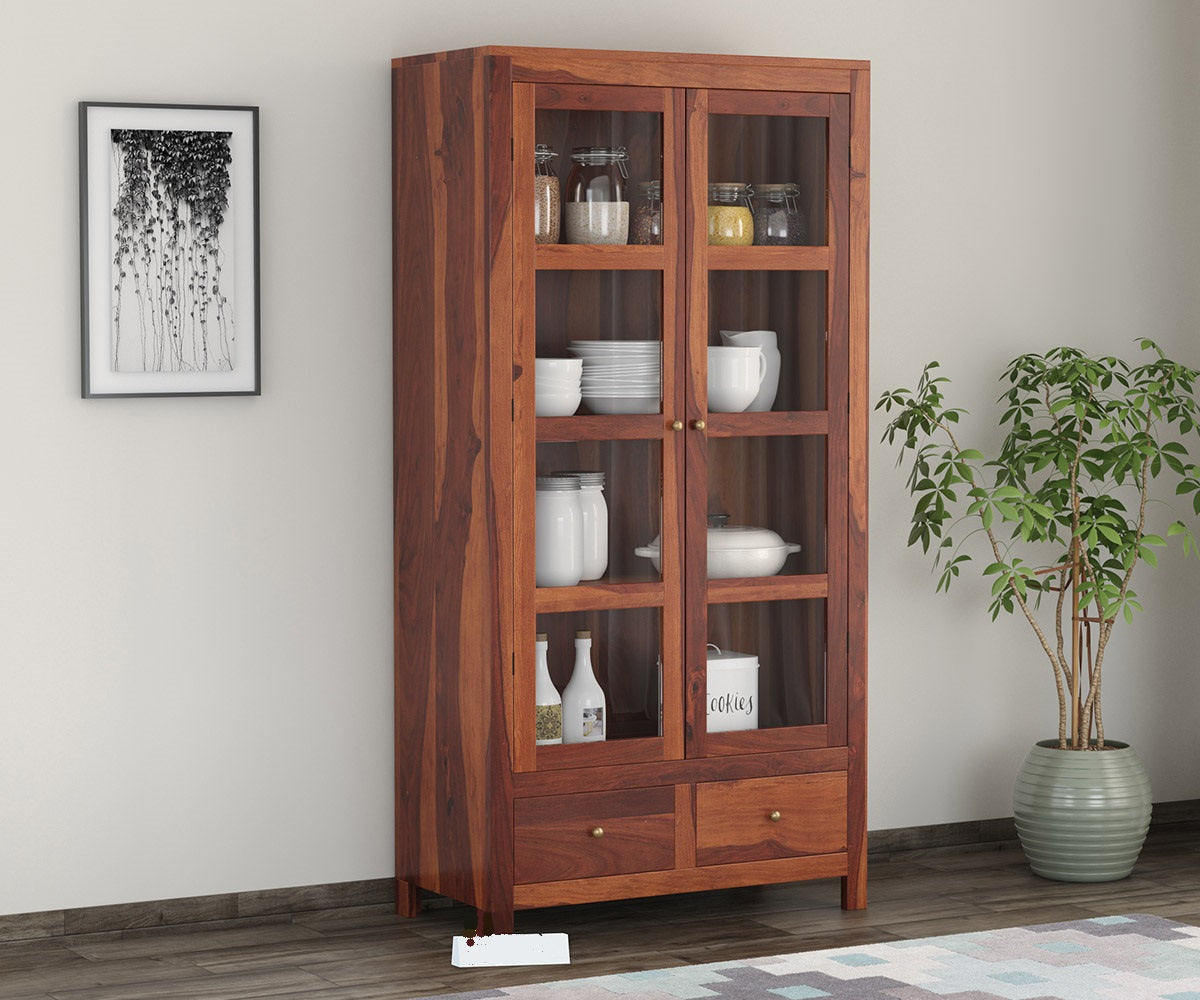 - A solid wood crockery unit, also known as a hutch, is designed to display and store dining ware, glassware, and other kitchen or dining essentials.