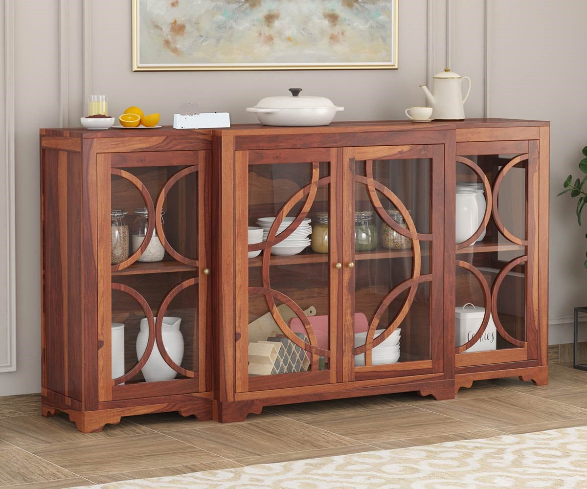 - A solid wood crockery unit, also known as a hutch, is designed to display and store dining ware, glassware, and other kitchen or dining essentials.