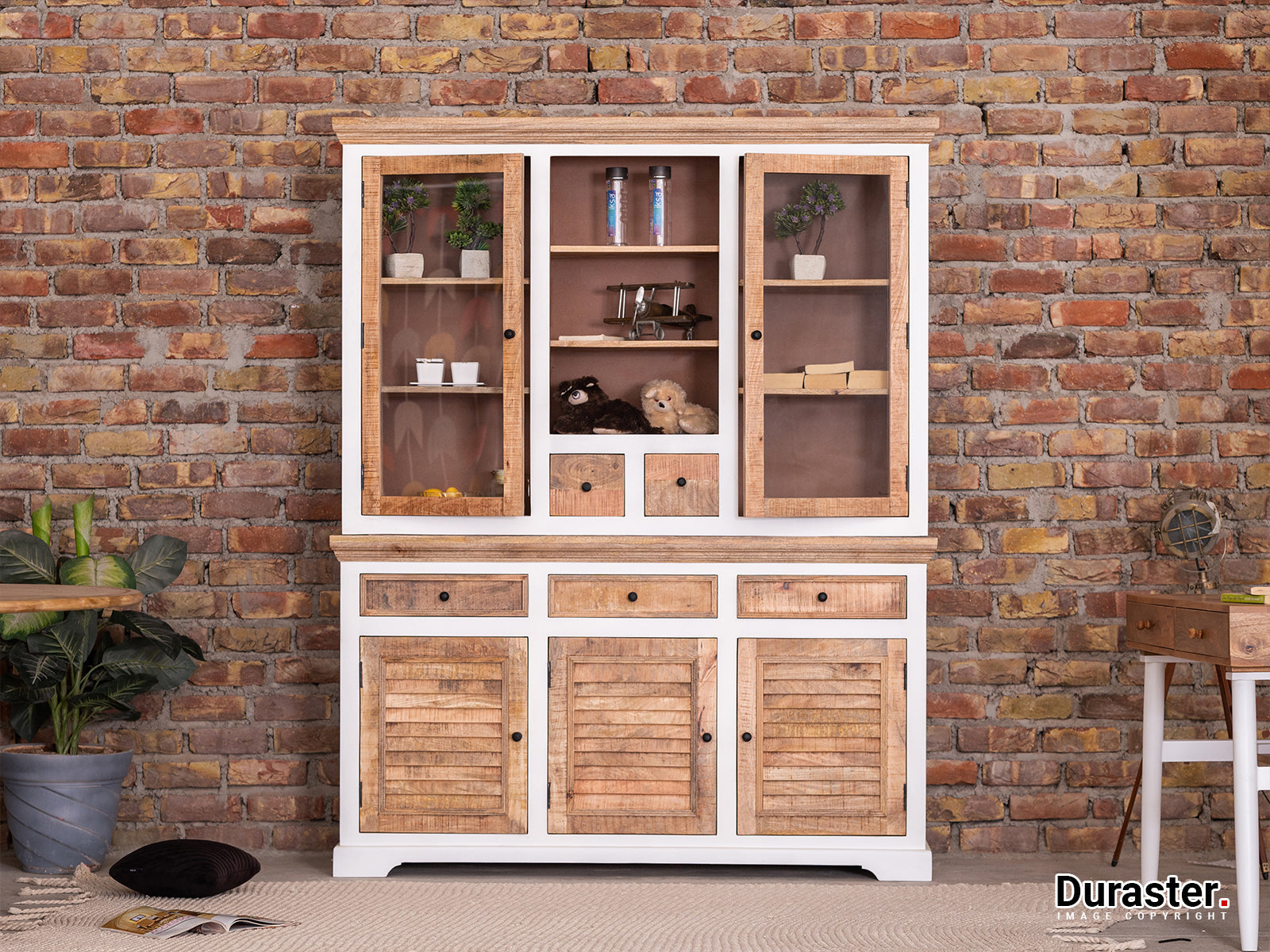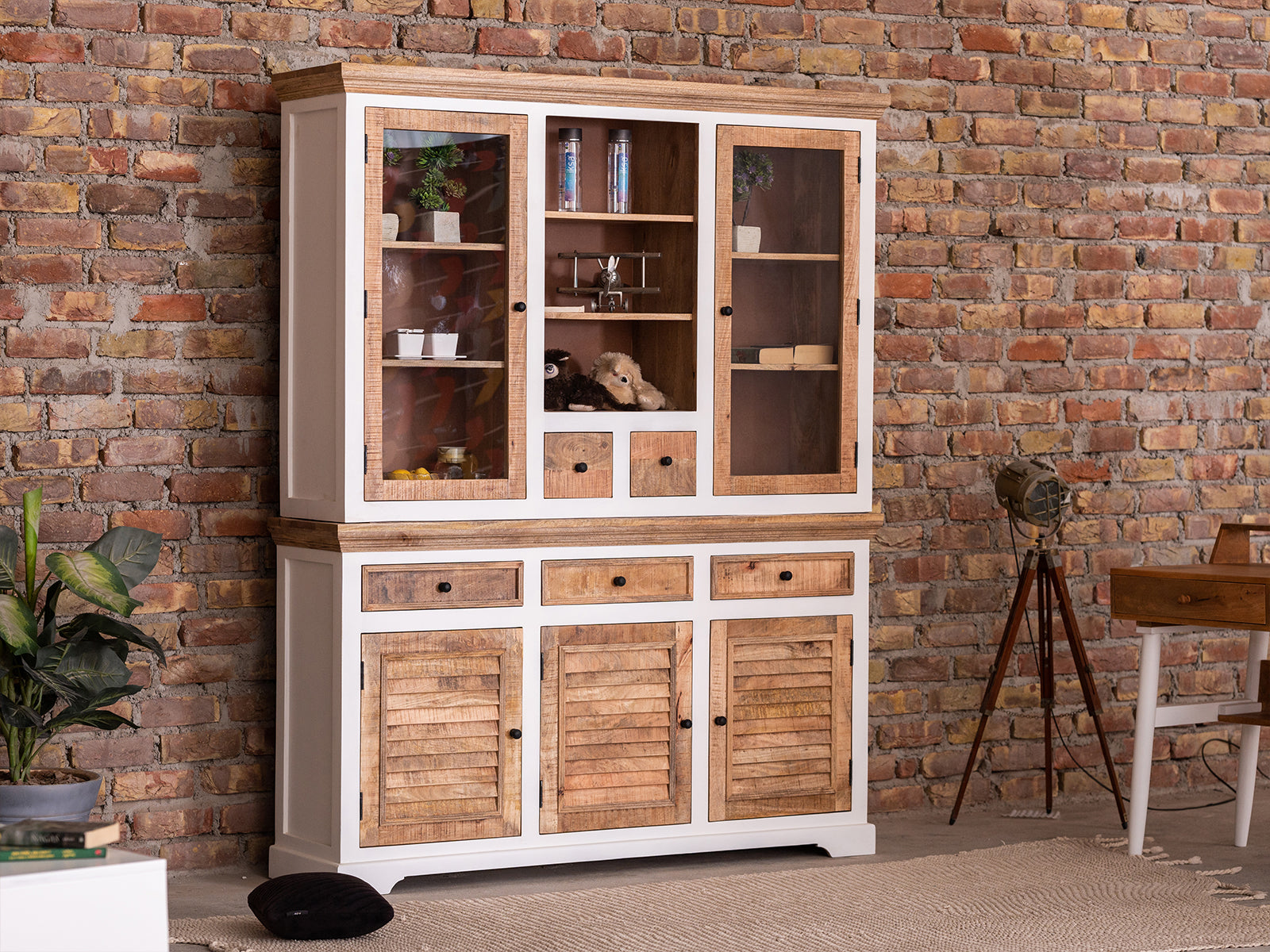 - A solid wood crockery unit, also known as a hutch, is designed to display and store dining ware, glassware, and other kitchen or dining essentials.