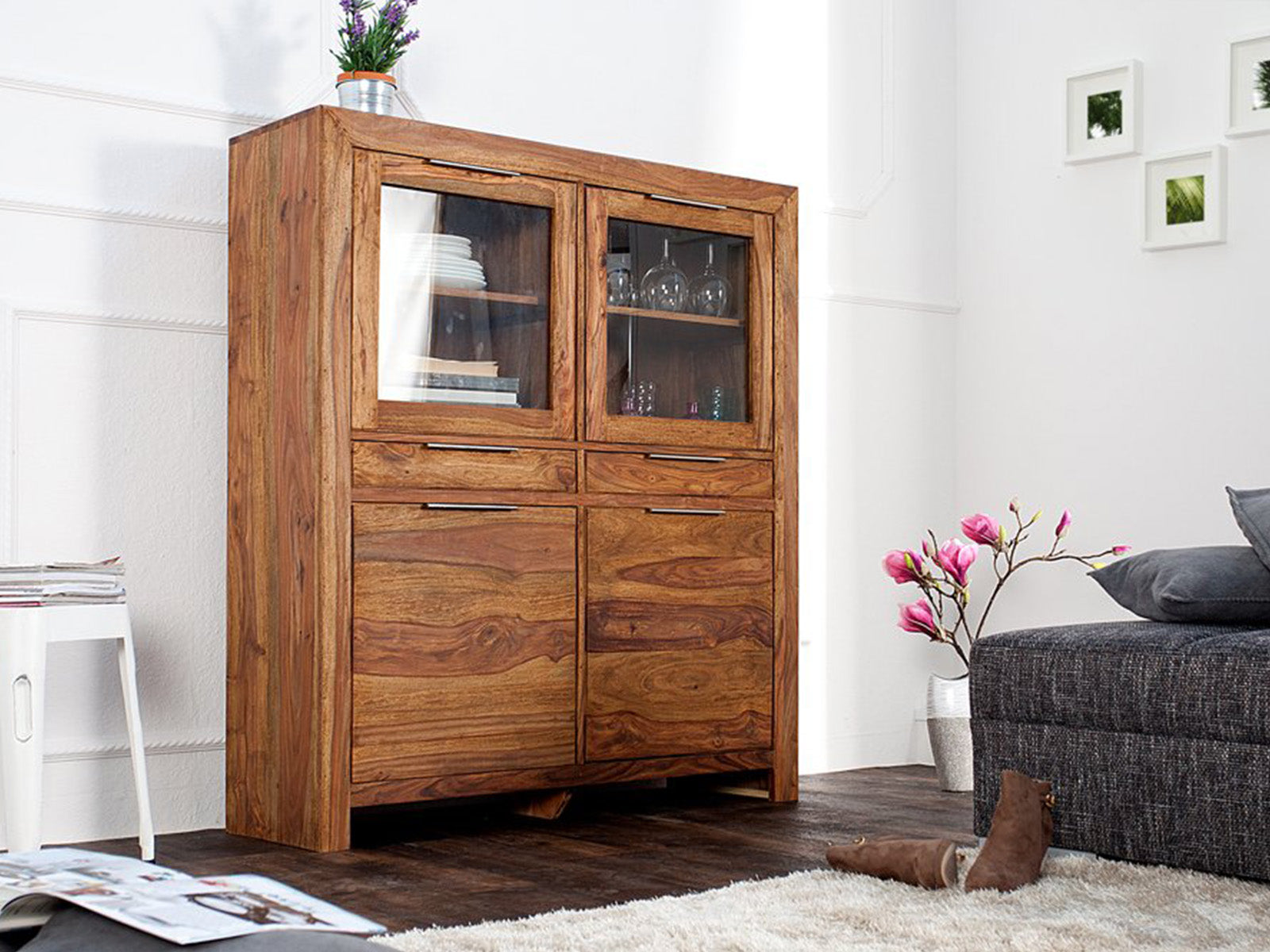 - A solid wood crockery unit, also known as a hutch, is designed to display and store dining ware, glassware, and other kitchen or dining essentials.