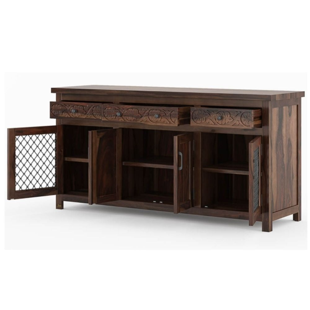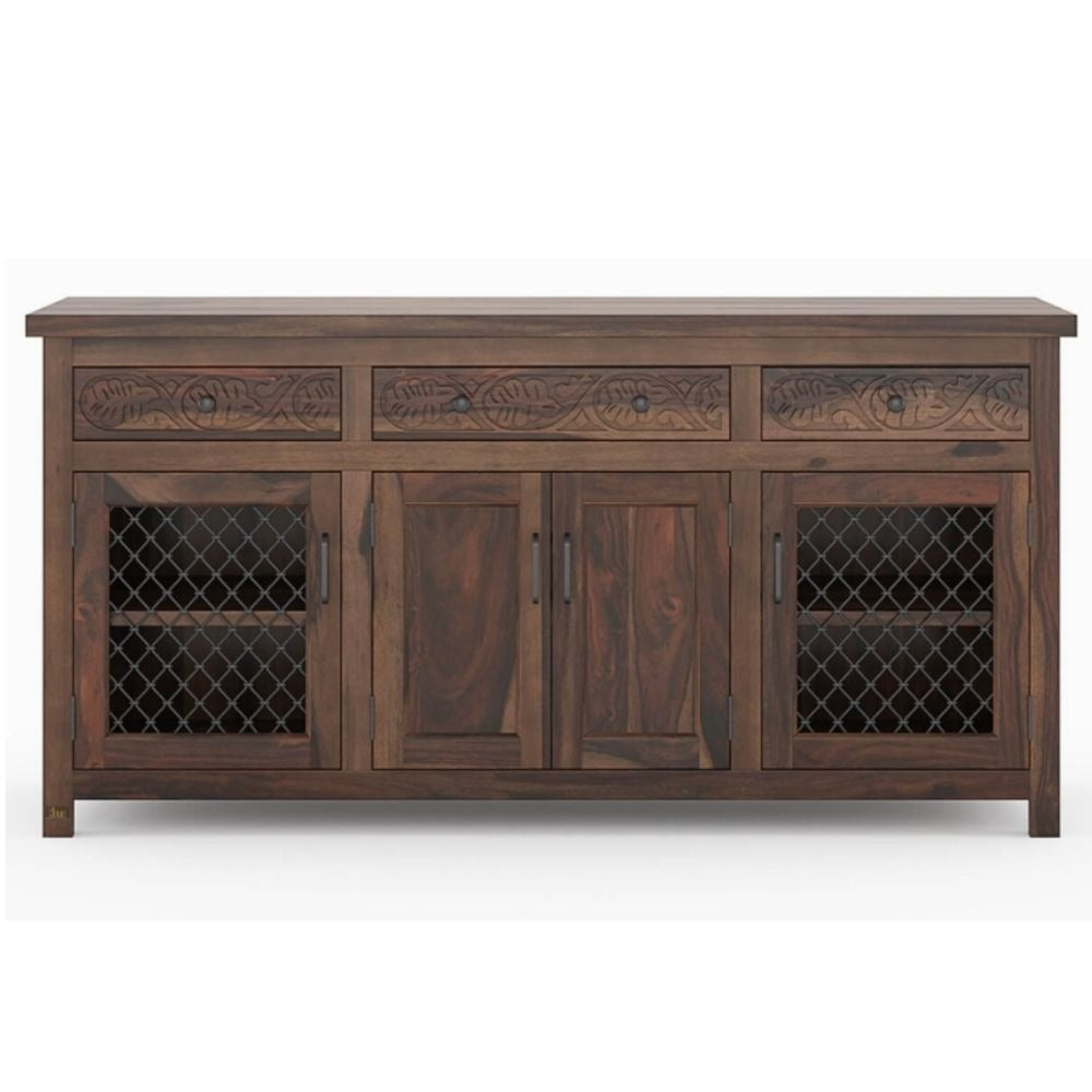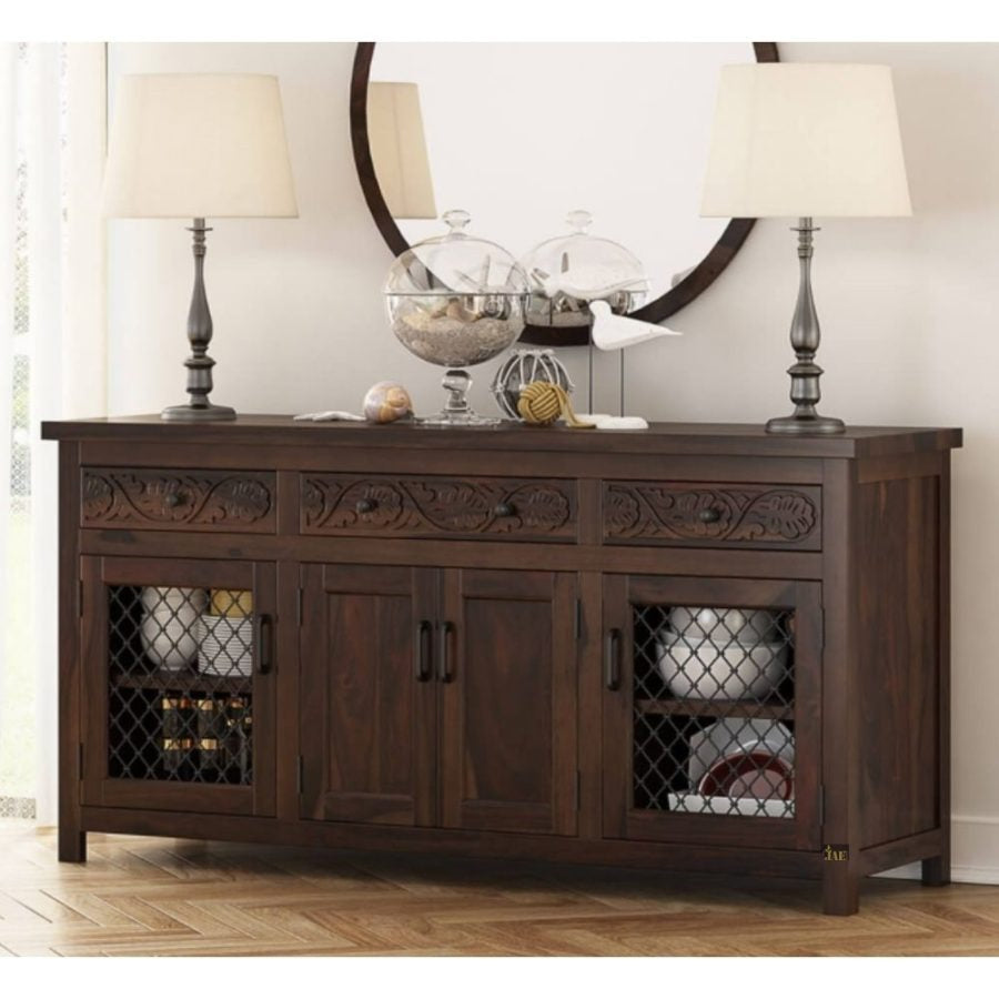 - A solid wood crockery unit, also known as a hutch, is designed to display and store dining ware, glassware, and other kitchen or dining essentials.