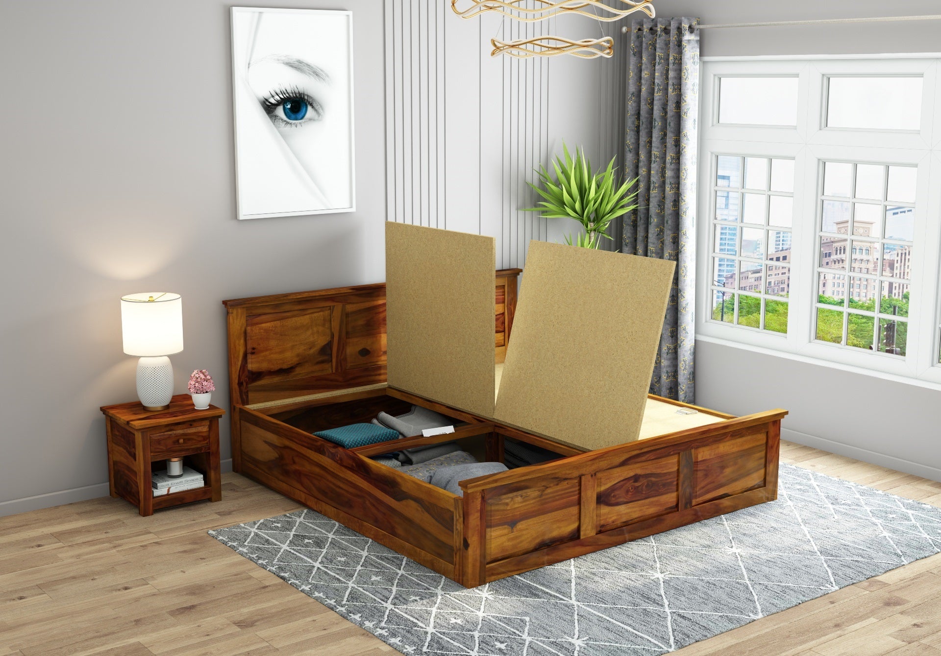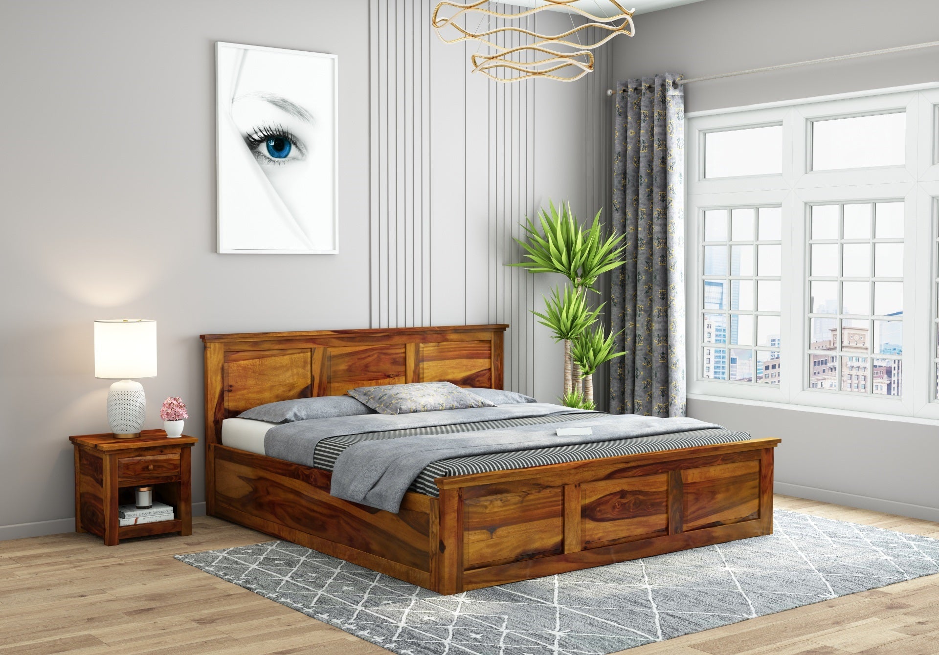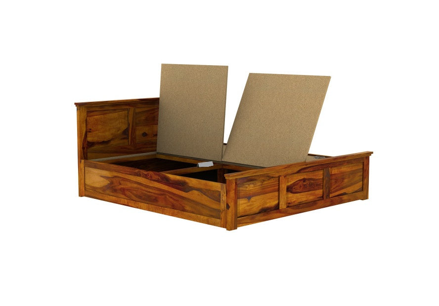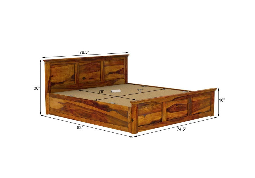 Solid Wood King Bed In Teak Finish