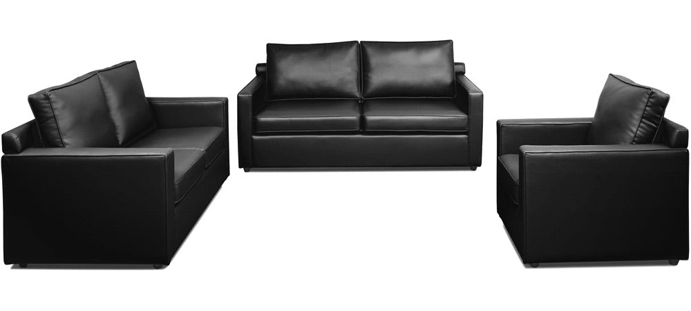 Synergy - Tarmac Black Leatherite Sofa (3-2-1 Sofa Combo)