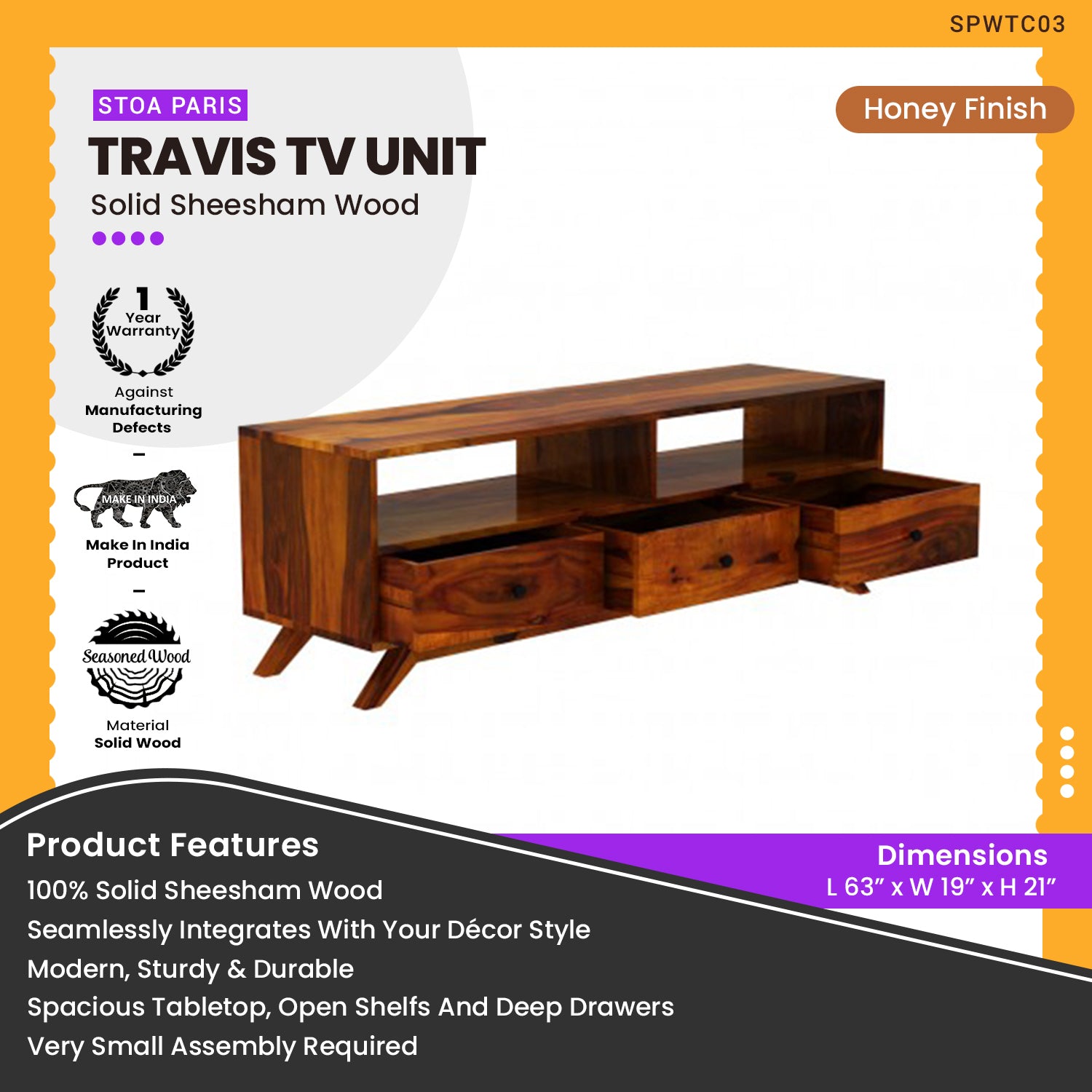 Travis - Solid Sheesham Wooden TV Unit - Honey