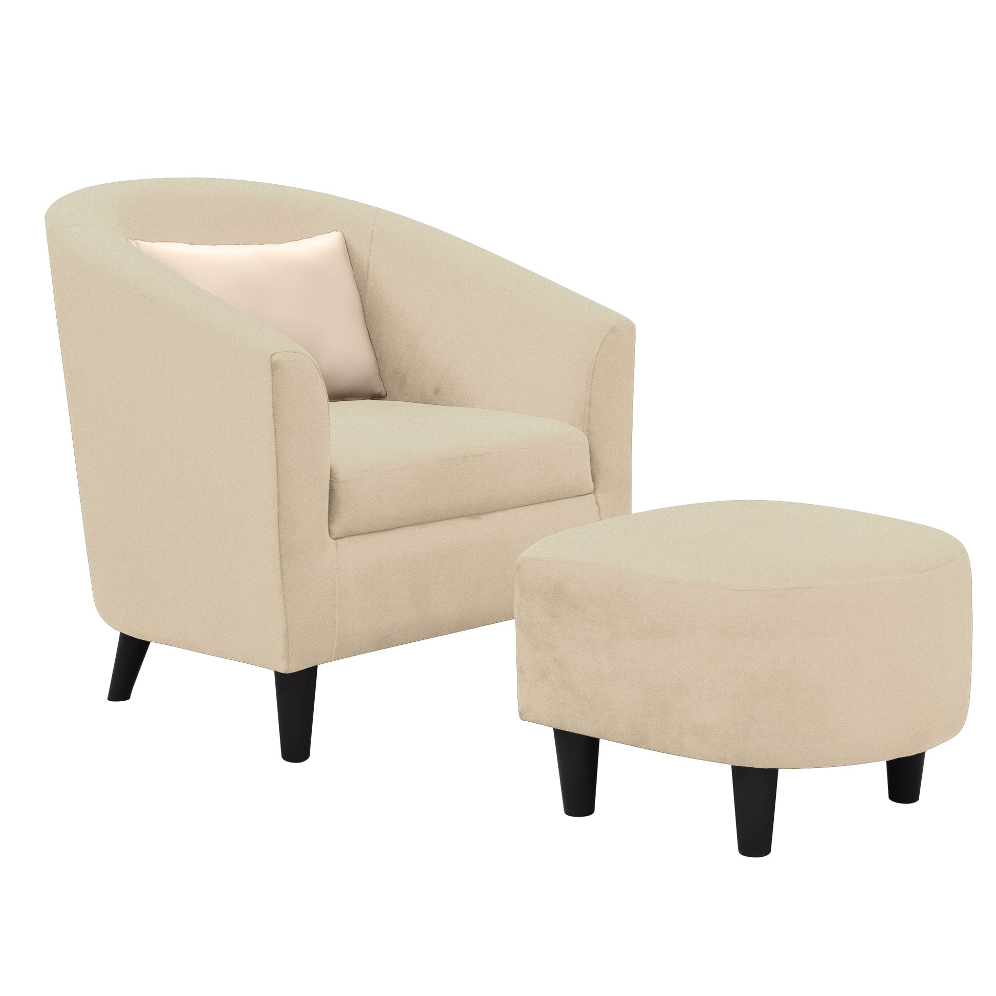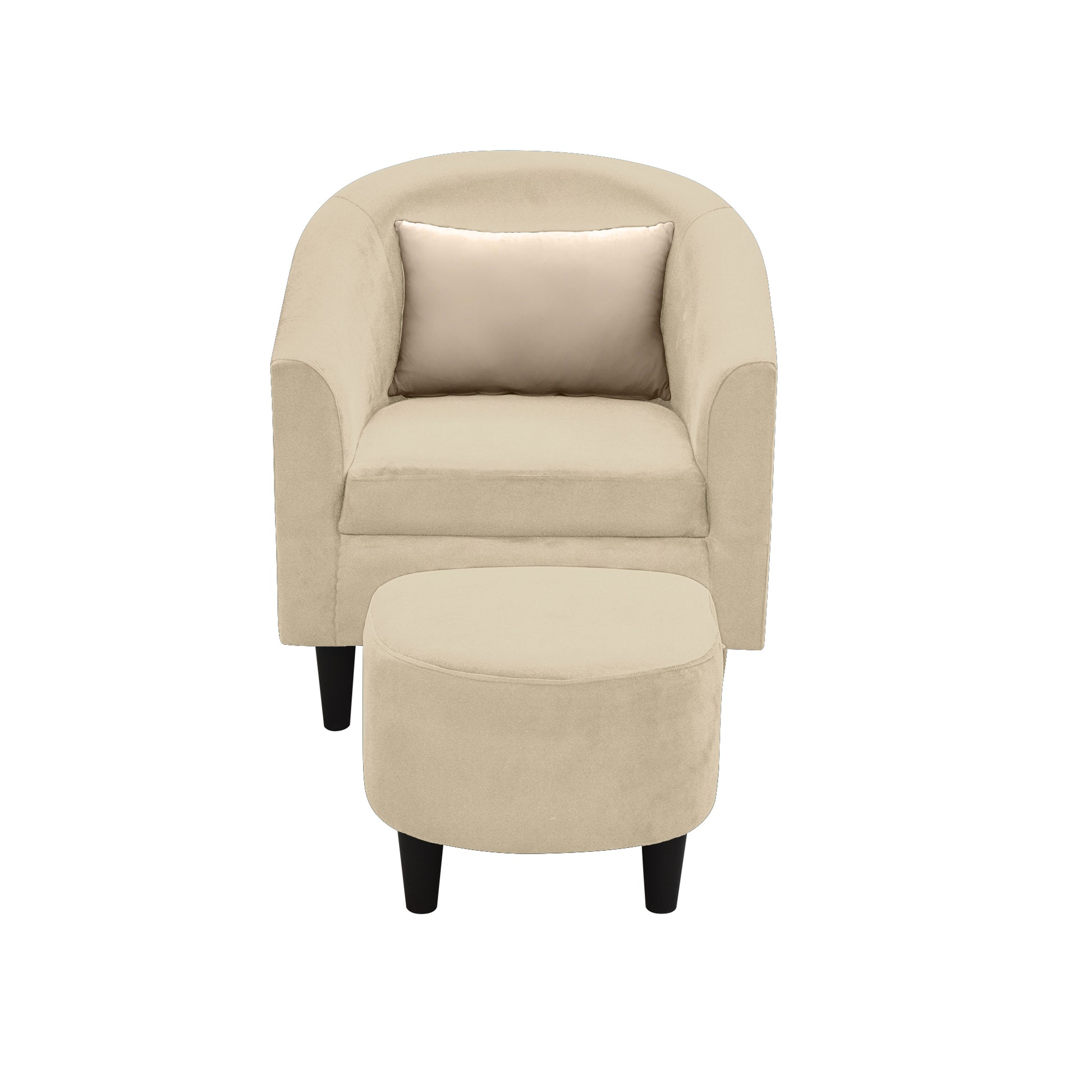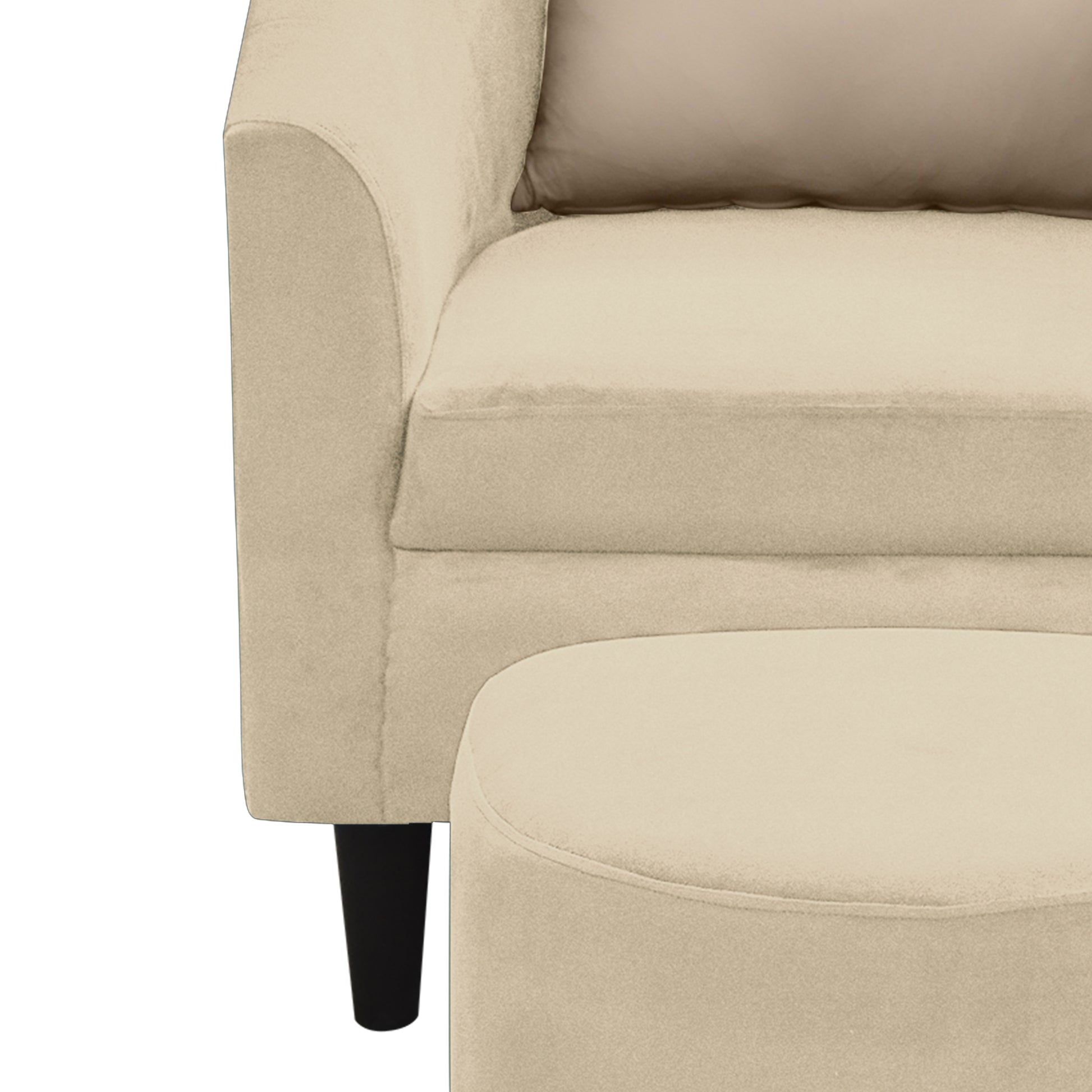 Valentine Cushion Back 1 Seater Fabric Chair with Footrest - Beige