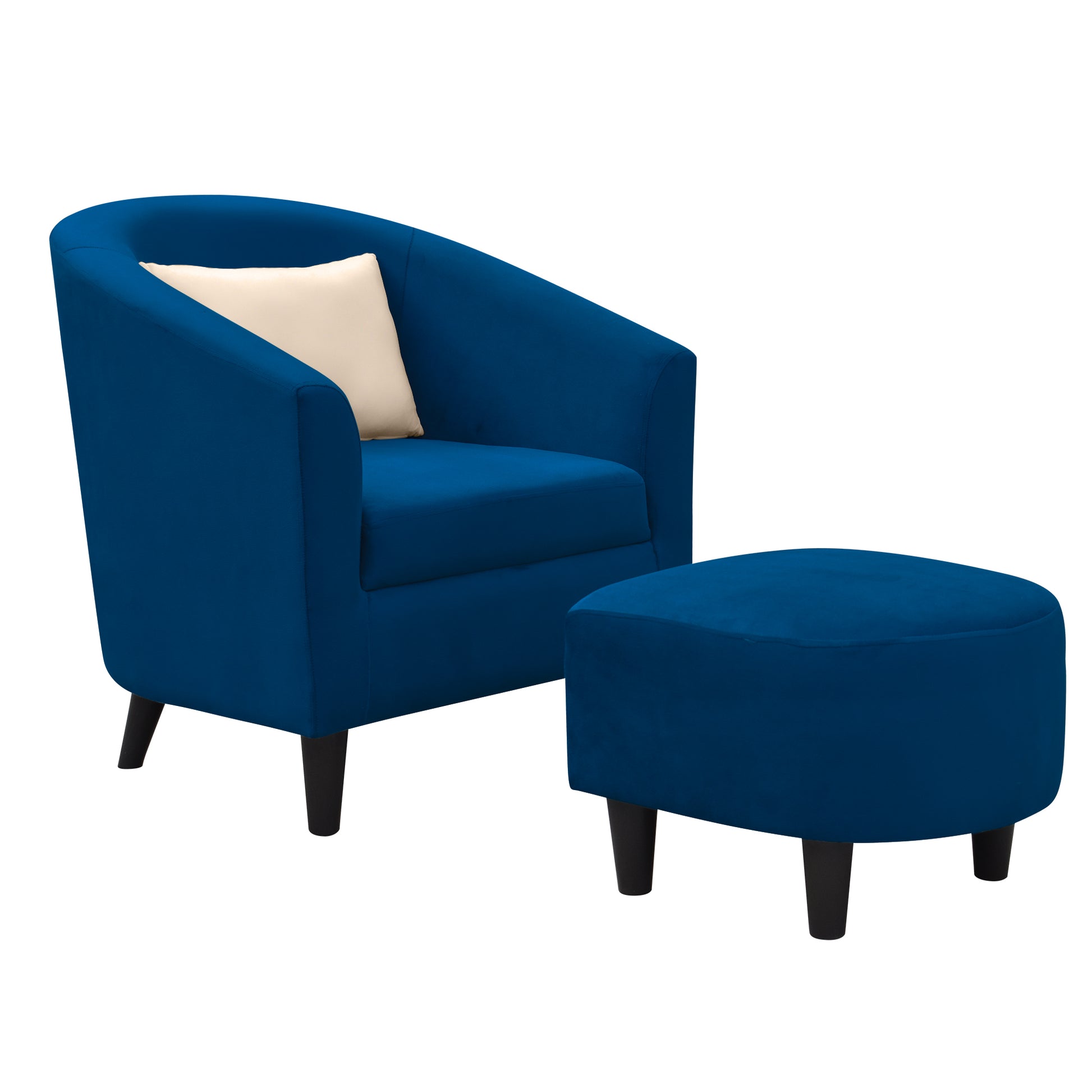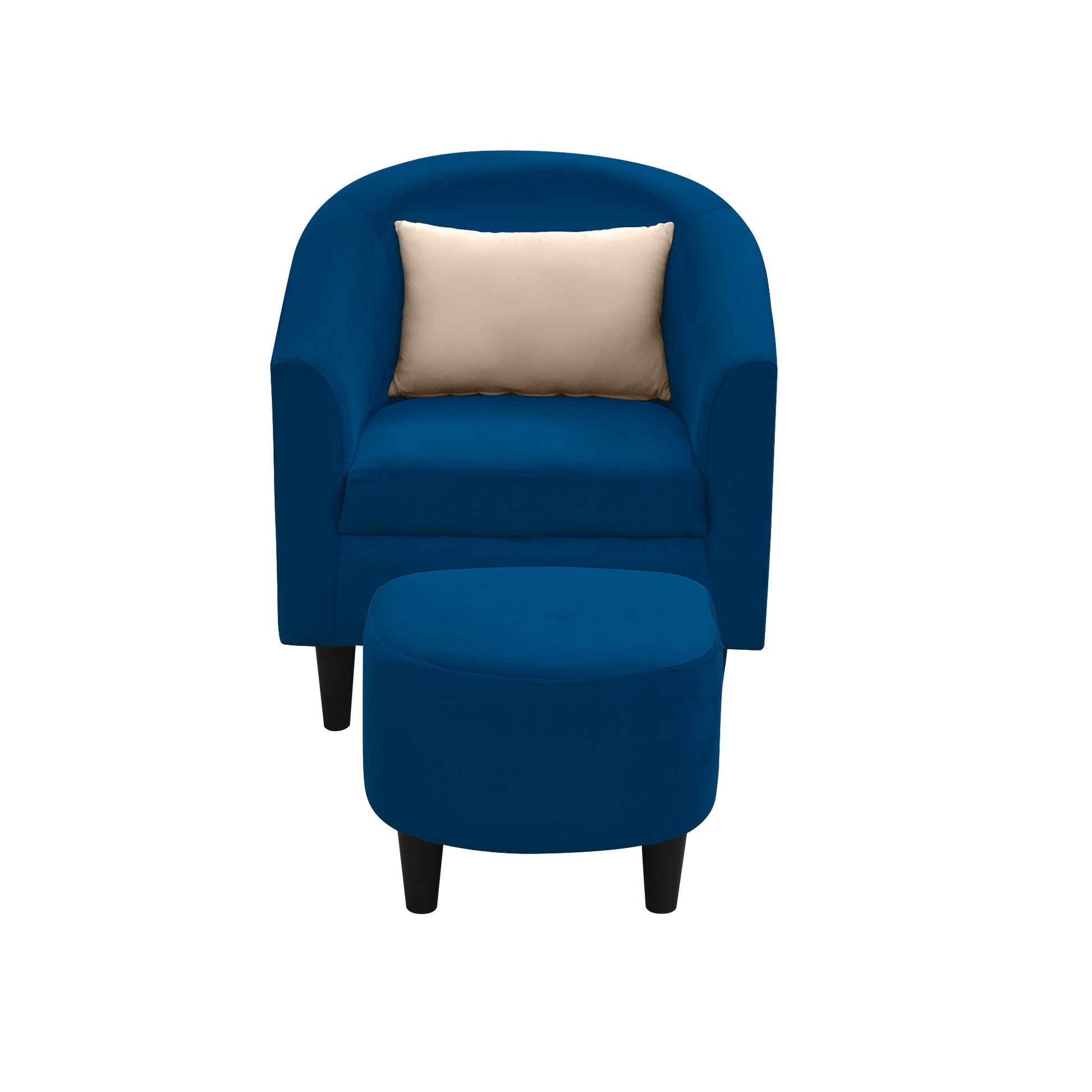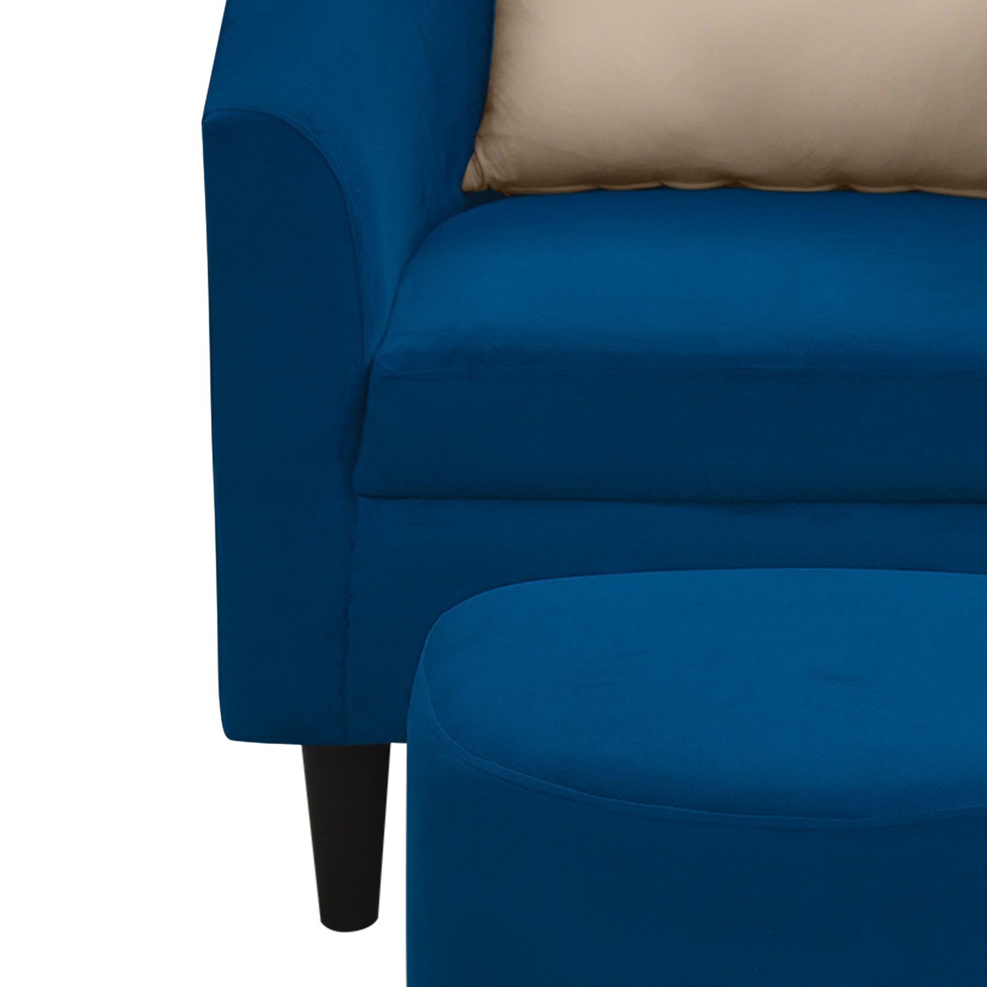 Valentine Cushion Back 1 Seater Fabric Chair with Footrest - Blue