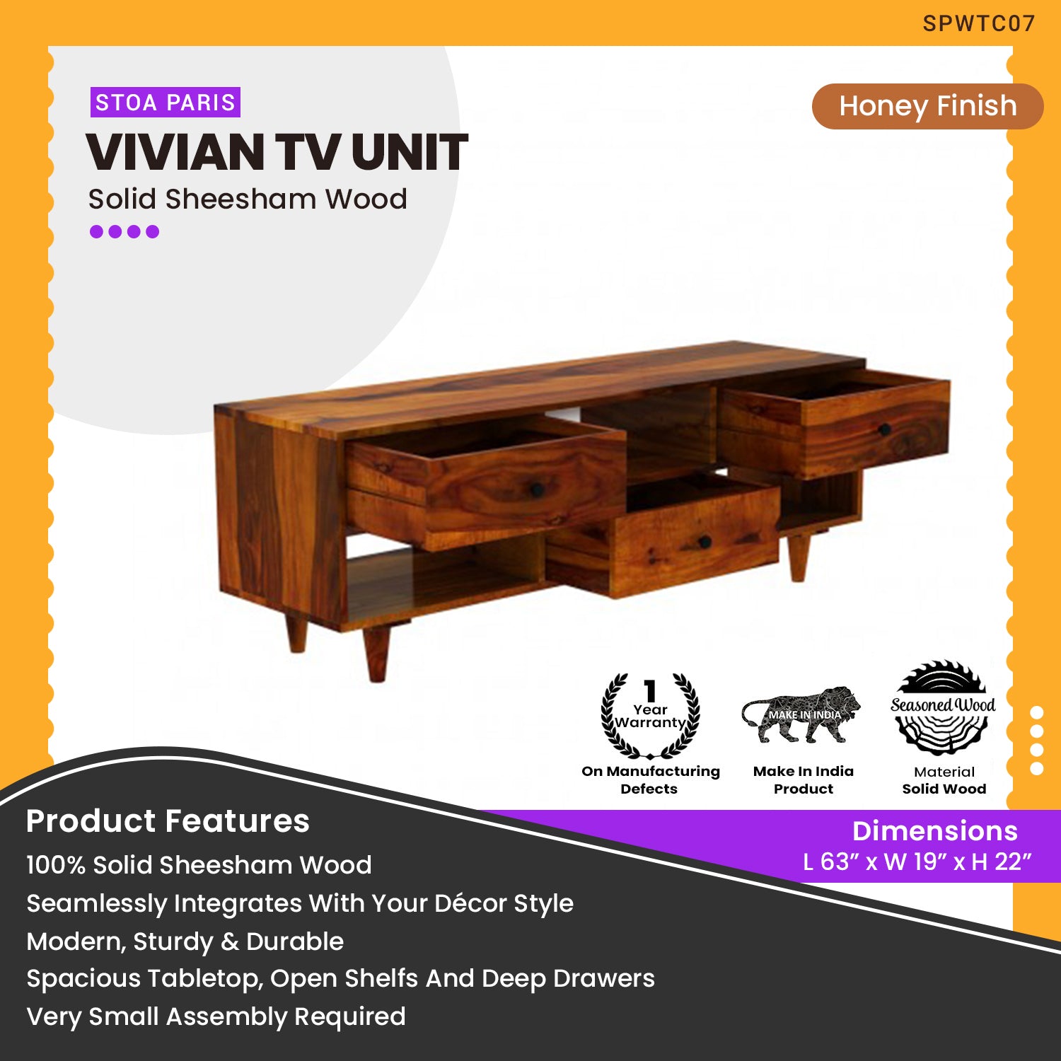 - Wood Color Finish : Honey Finish